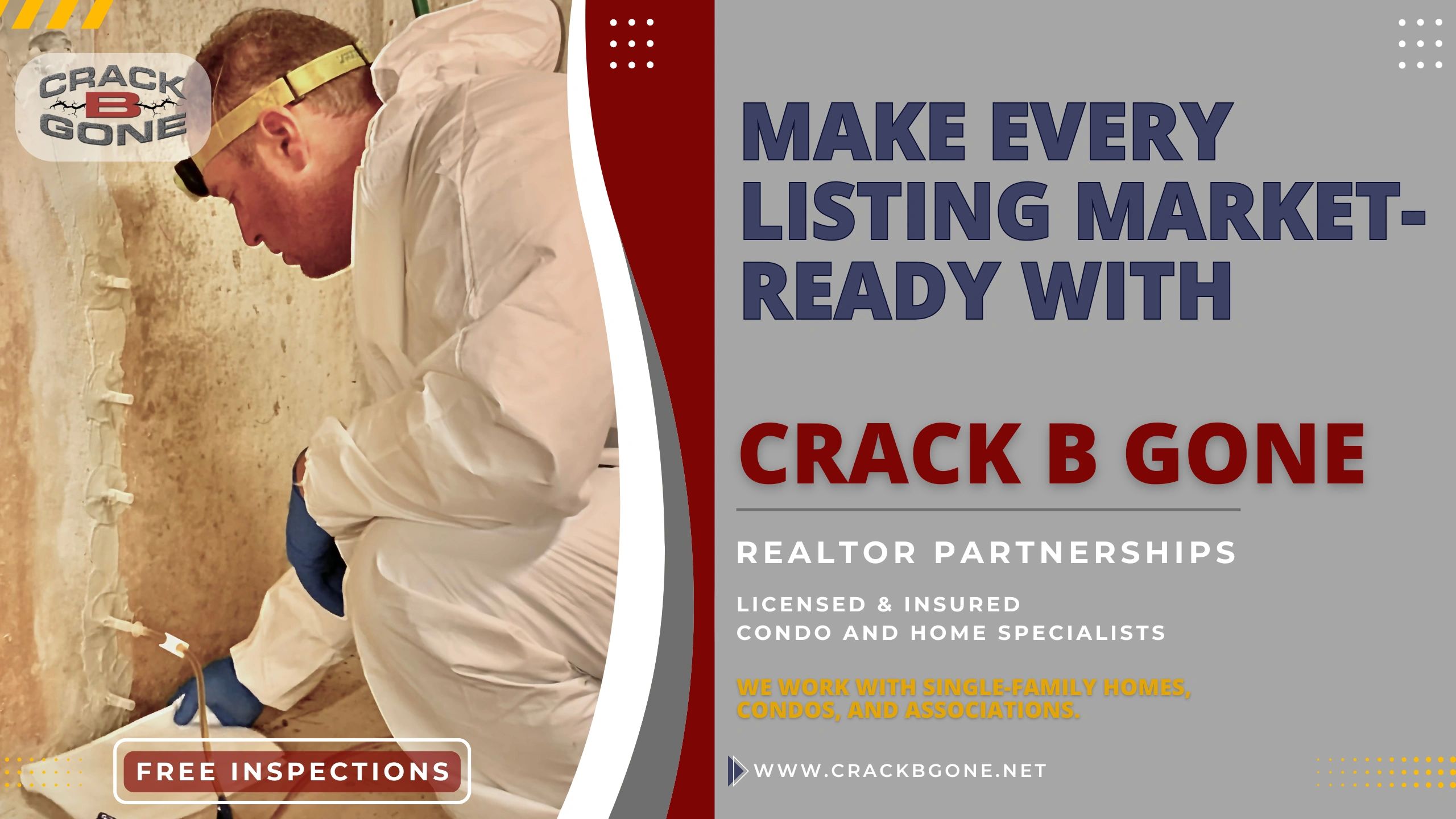 At Crack B Gone, we take pride in partnering with realtors and home builders to deliver fast, reliable basement repair services. With over 20 years of experience, we specialize in making homes market-ready by ensuring basements are dry, secure, and free from structural issues. Our expert team understands the urgency in real estate and construction timelines, offering quick turnarounds without compromising quality. Whether it’s sealing foundation cracks or maintaining sump pumps, we’re here to support your projects with affordable, dependable solutions. Partner with us today and ensure every home is ready to impress potential buyers!