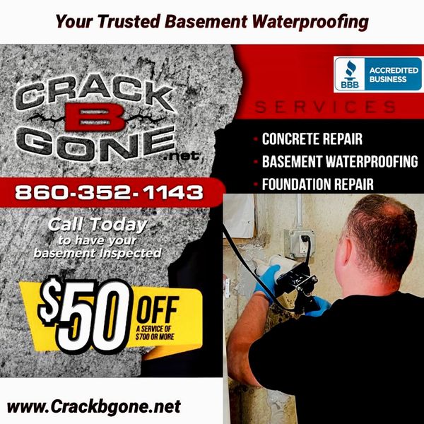 Copyright © 2022 CRACK B GONE LLC- Foundation Repair near me. Service Areas: Basement repair experts in Connecticut, Harwinton, CT, Torrington, CT, Bristol, Avon, CT, Canton, CT, Canton Center, CT, New Hartford, CT,, Watertown, CT, Thomaston, CT, Unionville, CT, Farmington, CT, Burlington, CT, Terriville, CT, Simsbury, CT, West Simsbury, CT, Winsted, CT, Litchfield, CT, Litchfield County, CT, Goshen, CT, Cornwall, CT, Bethlehem, CT, Morris, CT, Washington, CT, Warren, CT, New Preston, CT, Brookfield, Connecticut, Barkhampsted, Connecticut, Granby, Connecticut,, Hartland, Connecticut, Southbury, CT, Roxbury, Connecticut, West Simsbury, Connecticut, West Hartford, Connecticut, Winsted, Connecticut, Hartford, Connecticut, Litchfield County, Connecticut, Litchfield hills, ConnecticutBerlin, Connecticut, South Glastonbury, Connecticut, South Windsor, ConnecticutBroad Brook, Connecticut, Collinsville, Connecticut, East Berlin, ConnecticutEast Granby, Connecticut, East Hartford, Connecticut, East Hartland, ConnecticutEast Windsor, Connecticut, Enfield, Connecticut, Manchester, ConnecticutMarlborough, Connecticut, Milldale, Connecticut, New Britain, Connecticut, Newington, Connecticut, North Canton, Connecticut, North Granby, Connecticut, Plainville, Connecticut, Plantsville, Connecticut, Rocky Hill, Connecticut. Other Locations: Millerton, NY, Poughkeepsie, NY, Hudson, NY. Other locations: Basement repair, Great Barrington, MA, Worcester, MA, Berkshires, Westfield, MA, Agawam, MA, Springfield, MA